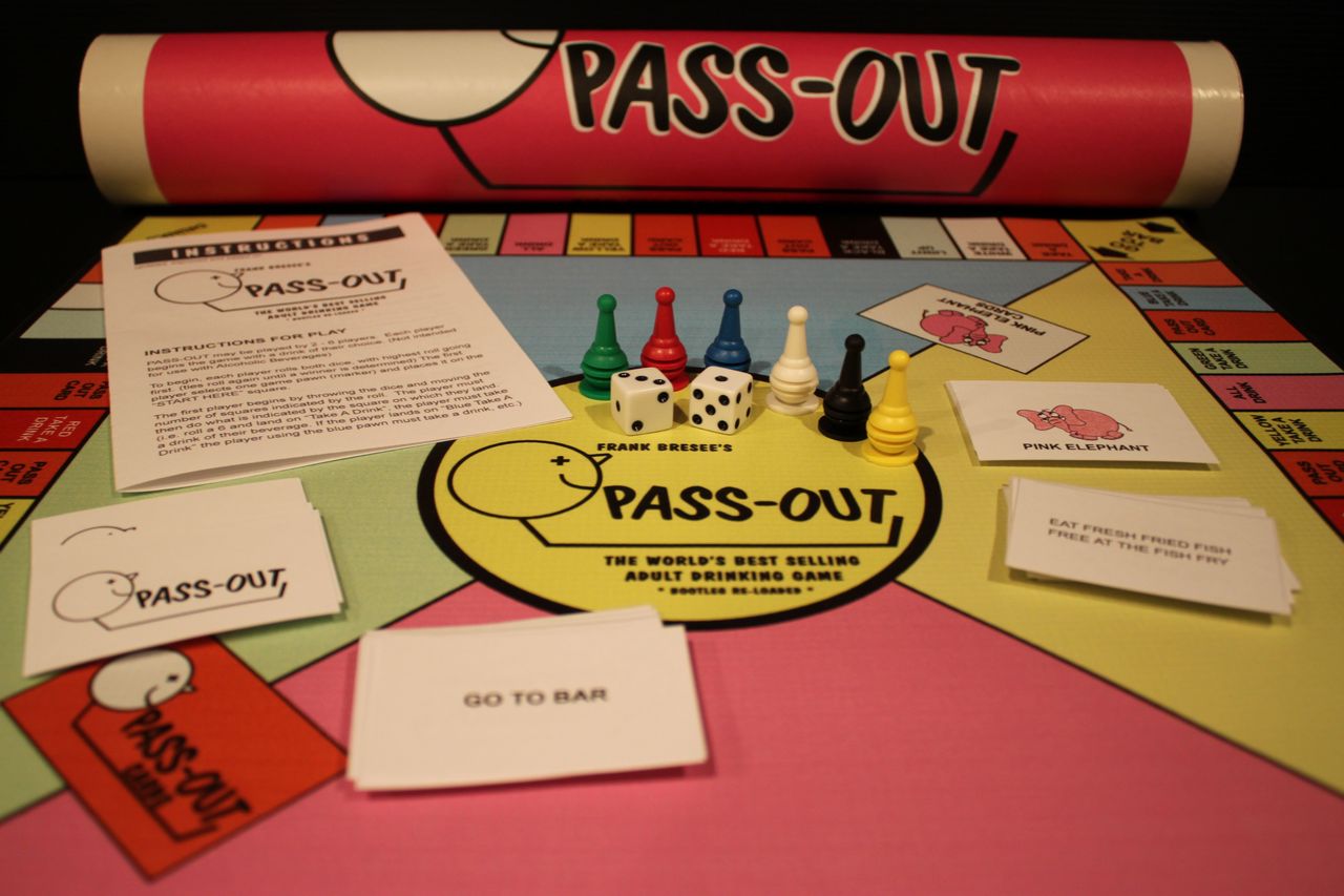 PASS-OUT Bootleg Re-loaded is an unauthorized spinoff based on Frank Bresee’s best selling adult drinking game originally produced in the early 1960’s. The subtle changes and revisions I've made to the game were in my opinion, long overdue. The most notable change for those familiar with PASS-OUT was the addition of two players to make it a six player game. There are also a few extra Pink Elephant and PASS-OUT cards. Some content has been slightly revised to reflect today's world.